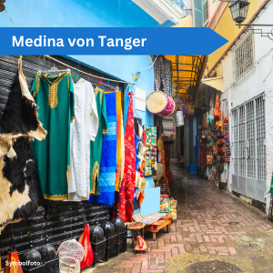 Medina von Tanger Die Medina von Tanger ist ein faszinierender Ort, an dem Geschichte, Kultur und lebendiges Alltagsleben aufeinandertreffen. Hoch über dem Hafen gelegen, bietet